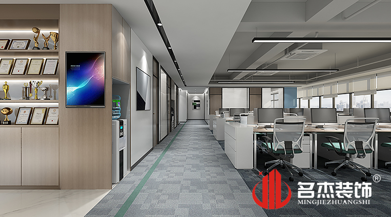 設計團隊根據行業特性和企業需求,將企業文化和品牌意識融入到整個裝修設計的環節當中。整體設計風格是現代簡約風格,利用簡約的時尚元素進行合理的搭配,讓空間中透露出一絲絲時尚且優雅的氣息。同時傳統的黑白灰色調作為主色調,在加入原木色調作為點綴色,也能很好的表達出綠色環保的設計要素。