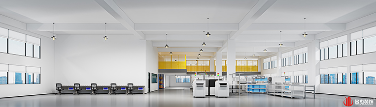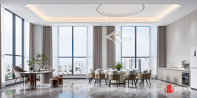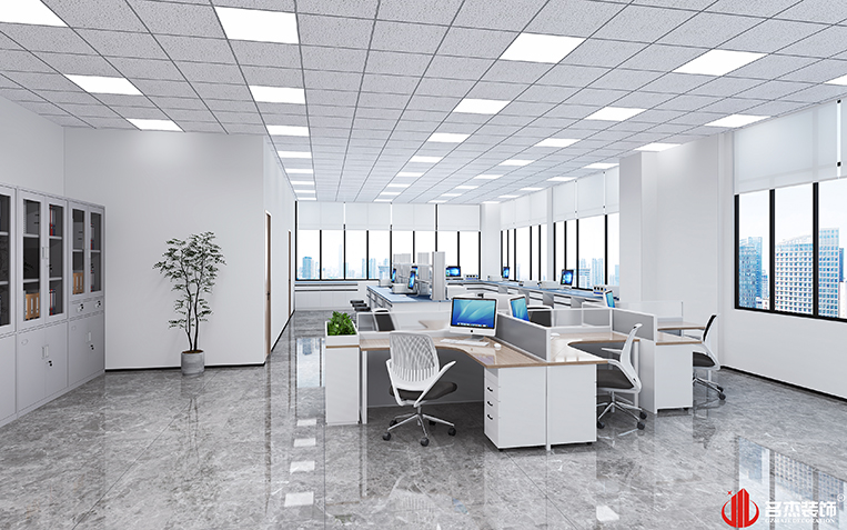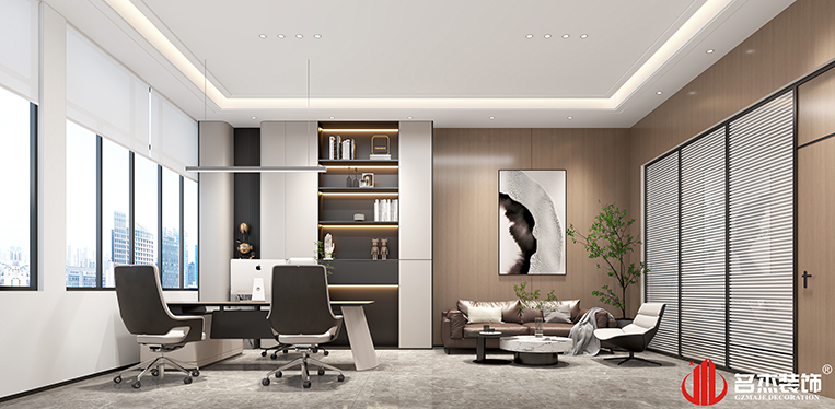 設計團隊在展廳區域使用具有科技元素的藍色,作為該空間的主導色,配合圓弧型的吊頂造型,讓空間具有科技感的同時,還能具有設計層次感。而且前臺區域的設計中,讓企業LOGO色作為空間的點綴色,使用在前臺桌子上,搭配造型感十足的吊頂,讓空間更具有設計層次感。#廣州辦公室裝修#