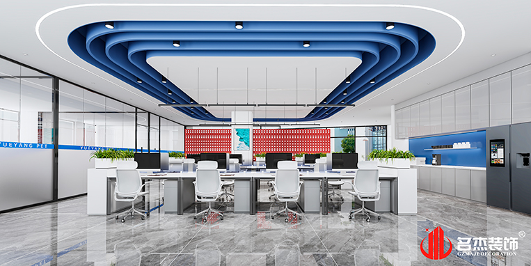 設計團隊采用的時尚簡約的設計風格作為這次的主打風格,將企業的LOGO——藍色融入到整體設計當中,企業文化也能夠很好地在整個辦公室裝修設計空間展開,讓員工和來訪的客戶感受到來自企業文化的沖擊。天花吊頂上使用撞色的設計,讓空間中有著不一樣的特色,區別于傳統的辦公裝修設計空間,成就屬于他們自己專屬的辦公室裝修設計空間。#廣州辦公室裝修設計#