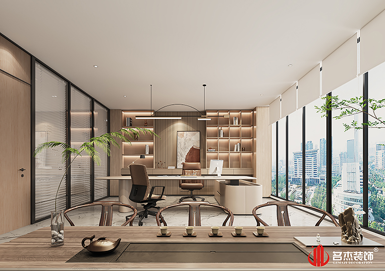 整體辦公室裝修設計空間是采用時尚簡約風格作為主題風格的,但設計團隊根據該企業的科技行業屬性,加入曲線這個設計元素來作為點綴,搭配米白色系,空間的設計層次感就非常明顯了。適當加入弧線燈帶也是能夠讓單調的天花吊頂有了不一樣的設計表達方式,增加整體辦公室裝修設計空間的設計感。#廣州辦公室裝修設計公司#